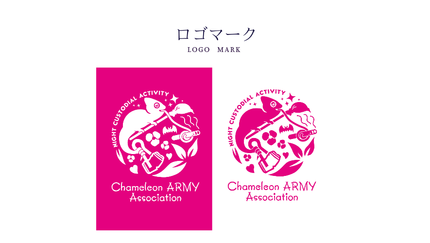 ※後々、カメレオンは夜行性ではなく昼行性とわかり、ロゴマークのキャラクター“カンちゃん”(カメレオン)の目をやや眠そうな感じにデザインしました。