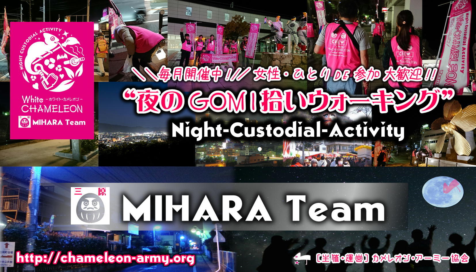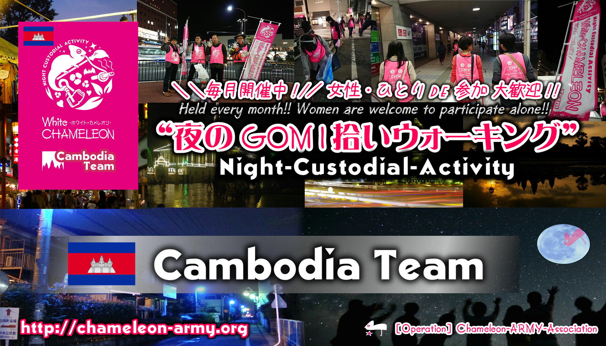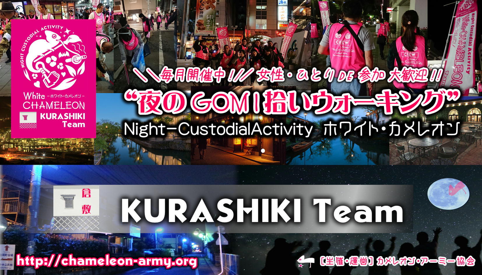 [ホワイト・カメレオン]の主な活動は“夜のGOMI拾いウォーキング”を各地域で定例で行い、その各リーダー会(チームリーダー/アシスタント)が主催・管理していきます。